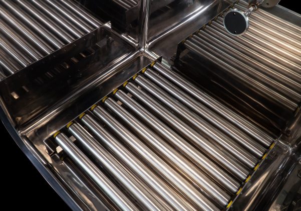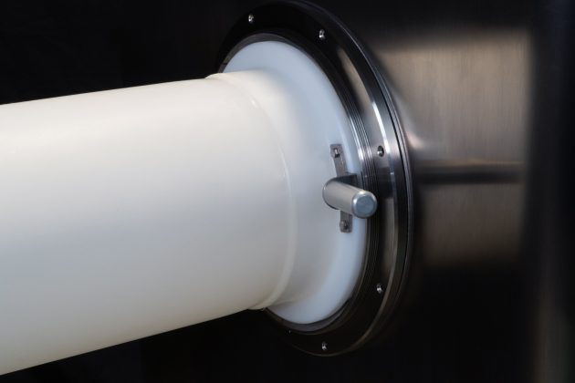 At the heart of a glove box, there is always a point of interest: safety. We have designed this glove box to offer both comfort and protection. We have planned everything to work most effectively around the discharge point. A roller conveyor facilitates drum insertion and extraction operations. Moreover, there are dedicated spaces to accommodate closing tools and bag clamps. In addition, the comfortable RTP door allows the material to exit safely from the beta container. Finally, the inflatable seal ring mounted on the canister in the glove box serves both to secure the liner, allowing its control with gradual unwinding, and to function as an anti-dust collar, thanks to the internal inflatable gasket.