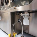 For instance, with Cleaning in Place, the washing of the chambers via spray ball is closely linked to the product that has been handled. From the isolator’s control panel, it is possible to obtain dedicated information for the appropriate washing cycle. Water temperature, washing time, and specific solvents are predefined and can be recalled by the operator, thanks to the communication between the machine and the plant, which will follow the “recipe” providing all the useful characteristics for washing. Operators also have spray guns with water for washing and air for drying. Moreover, a conductivity probe helps determine if solvent is still present in the drained water or if further rinsing of the chambers is required.