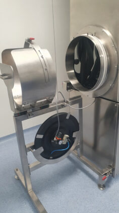 Beneath the double-sided glove box, a dedicated powder discharge valve is installed. The pre-chamber is also configured to host an RTP door, which always opens downward to ensure even greater safety and OEB5-level containment performance.