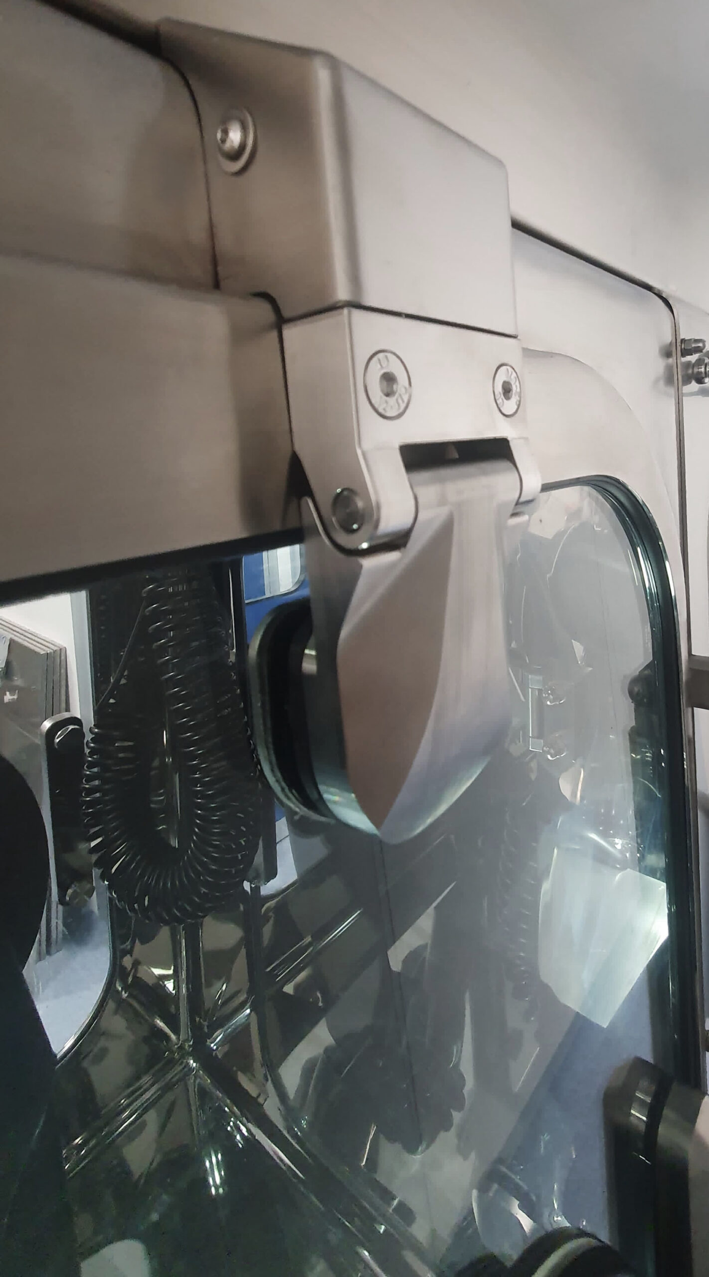 Beneath the double-sided glove box, a dedicated powder discharge valve is installed. The pre-chamber is also configured to host an RTP door, which always opens downward to ensure even greater safety and OEB5-level containment performance.