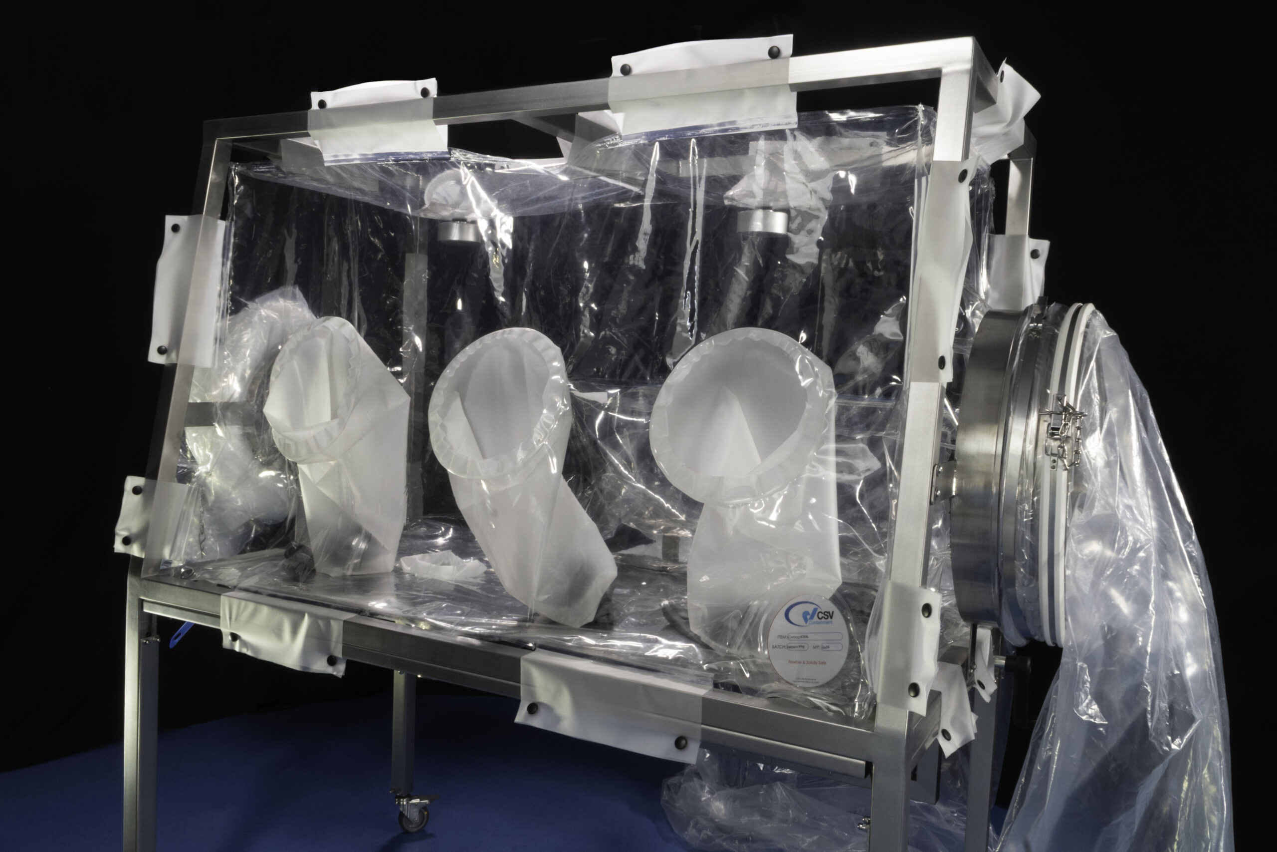 We provide you support, but also supports. Depending on the customer’s needs, customised supports can be built to extend the working surface outside the isolator. A reclining table, for example, can help in the material entry or exit phases through customised sleeves. Supports for liners and canisters can also be customised. The addition of a collar with an inflatable seal, either manual or automatic, allows the liners to be locked in place and acts as an anti-dust barrier. Finally, to complete the offer, CSV Containment also provides support in terms of services. One of the most requested is the SMEPAC test, an activity in which our containment teams have extensive experience.