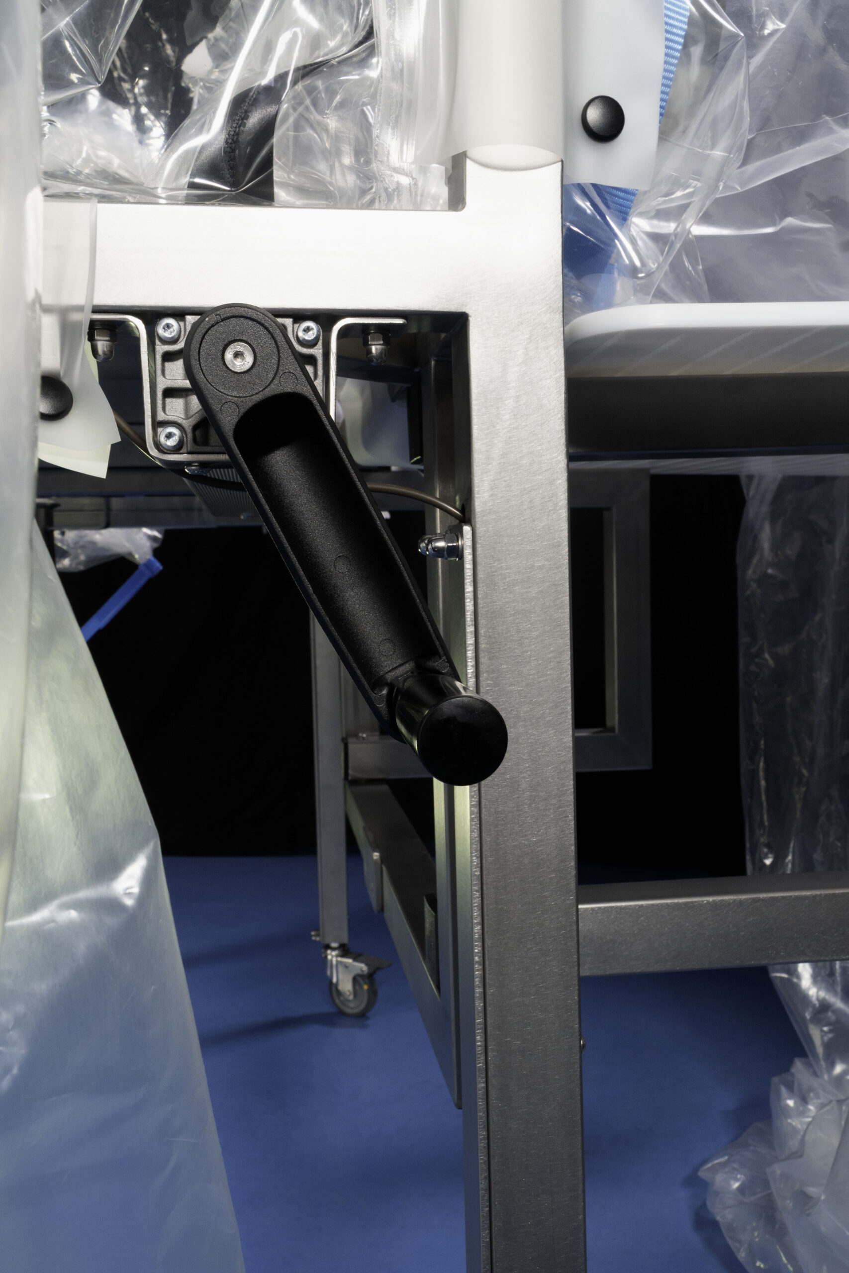 An isolator placed in HPAPI R&D environments must guarantee safety measures, facilitate the work of those who need to measure, dose, and weigh, and, finally, adapt to the existing spaces. This last point is our strength: working to measure and satisfy the customer’s requests as much as possible. Chamber dimensions, glove position, shape, and size of bag-in and bag-out ports. Another dimension we work on is height. For some time now, our isolators have been equipped with a telescopic mechanism. Hydraulic pistons, operated manually or by an electric motor, can raise the work surface from 90 to 130 cm in height. Height adjustment not only allows operators to find the most comfortable position for working with gloves but also facilitates connections with containment accessories.